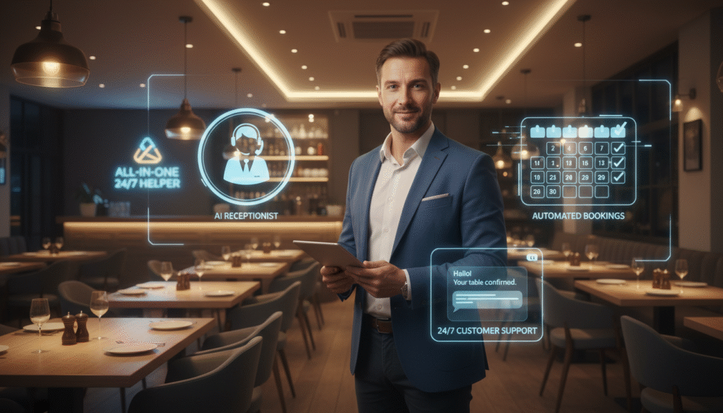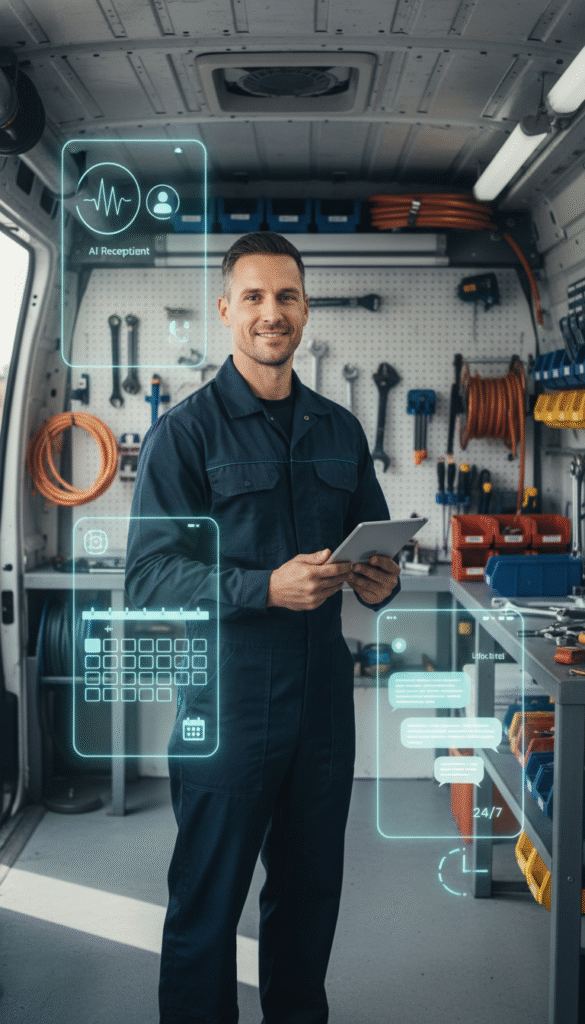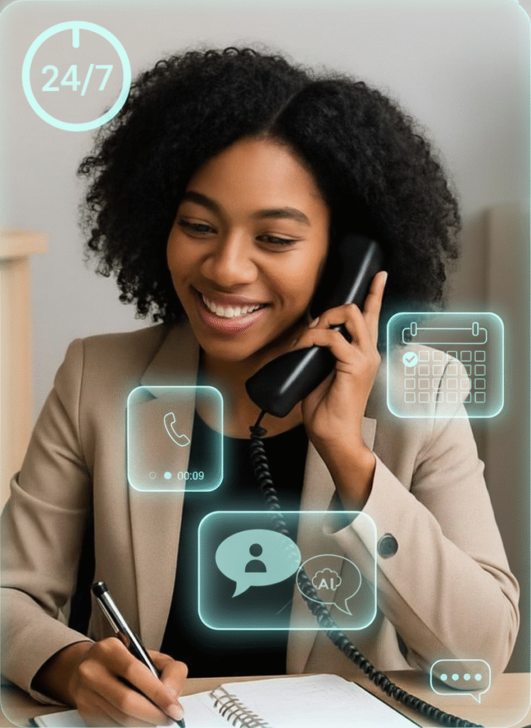 Our AI receptionist answers every call instantly, books appointments 24/7, and turns more conversations into customers—so you can focus on running your business, not managing your phone.